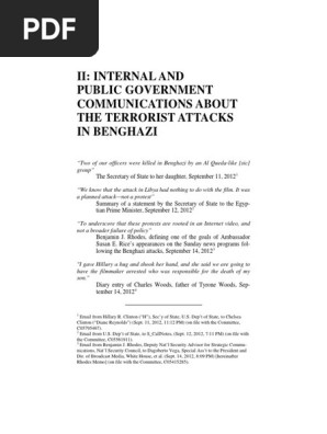 Ii Internal And Public Government Communications About The Terrorist Attacks In Benghazi International Relations Government