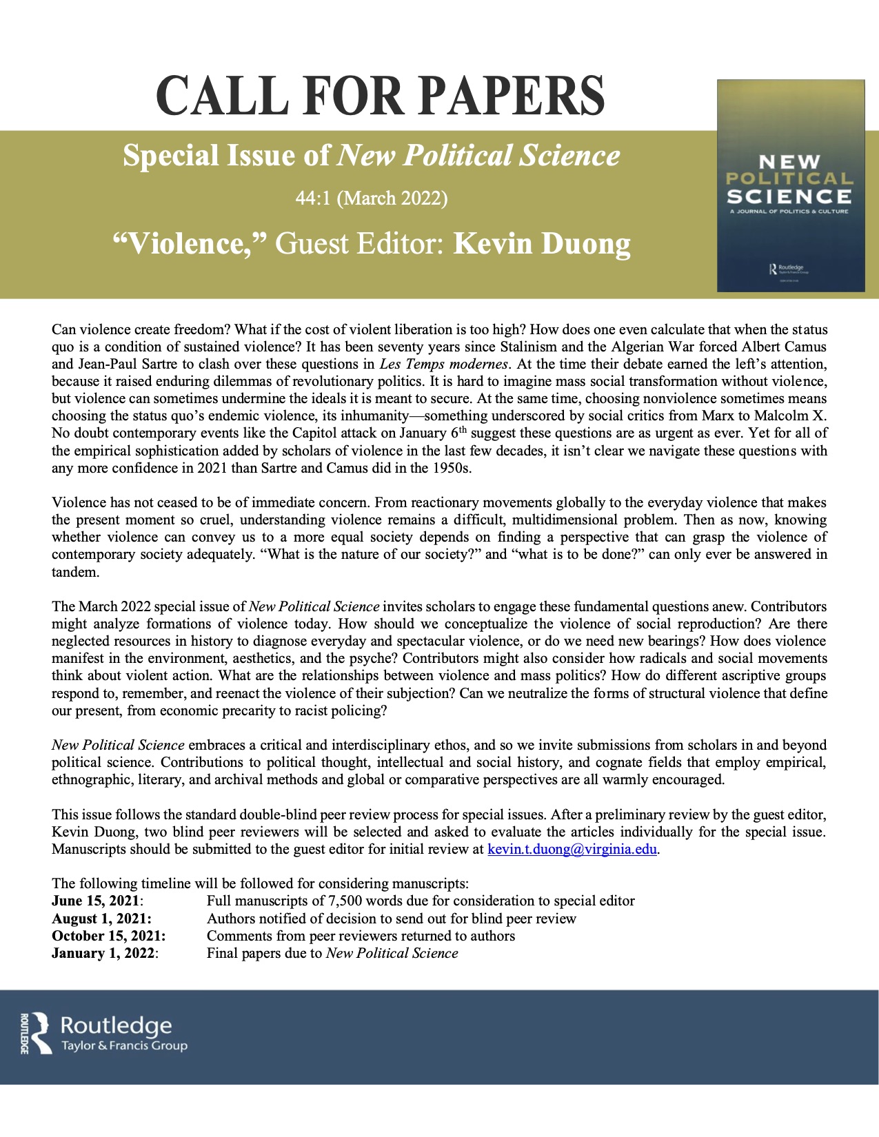 New Political Science On Twitter Cfp For Nps Special Issue 44 1 March 2022 Violence With Guest Editor Kevin Duong Please Share With Your Networks Https T Co Fxmnu0amgj